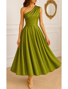 Футляр До щиколотки Вечернее платье Выпускные платья Элегантный стиль Без рукавов На одно плечо Выпускной Официальные Сатин с Один цвет