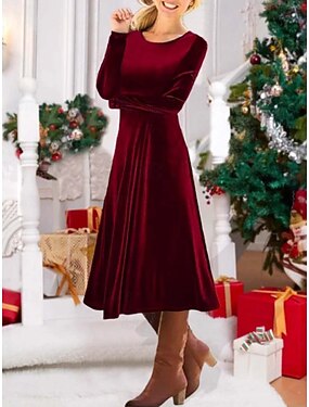 Женское бархатное миди-платье футляр платье-аллея платье-фит и флер элегантное вечеринка бохо на свежем воздухе повседневное однотонное с длинным рукавом круглый вырез черный красный зеленый весна