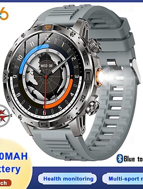 Прочные мужские смарт-часы военного образца со светодиодным фонариком, аккумулятор 1000 мАч, режим ожидания 100 дней, дисплей AMOLED 1,7 дюйма, GPS-трекер