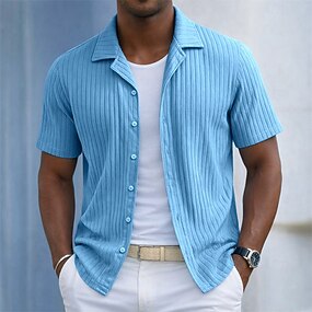 Муж. Рубашка Повседневная рубашка Пляжная рубашка Кнопка рубашка Рубашка жаккардовая Черный Белый Винный Темно синий Хаки С короткими рукавами Сплошной цвет Полотняное плетение Лацкан
