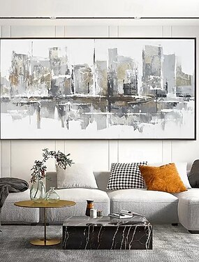 Картина маслом ручной работы на холсте, настенное искусство, украшение, современный серый абстрактный городской архитектурный пейзаж для гостиной, домашний декор, рулонная картина без рамы,