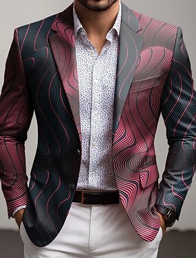 Муж. геометрический Пиджак Пальто Удобный Дышащий Художественный На каждый день Повседневные Вечерние наряды Карман 3D печать Пуговицы Все сезоны Острый Длинный рукав Синий Красный Зеленый