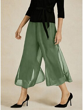 Жен. Широкие Чино Элегантный стиль До щиколотки Нормальная Эластичная Сланцевый зеленый Лето Весна Осень