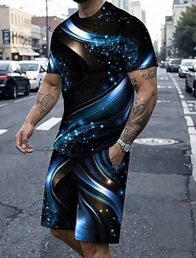 Муж. Галактика 2шт Наборы футболок Летние вершины С короткими рукавами Короткие штаны Вырез под горло Спорт На каждый день модный Повседневные Отпуск На выход 3D печать Лето Синий Красный Лиловый