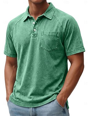 Муж. Рубашки поло Рубашка из 100% хлопка с кислотной стиркой Повседневные Отложной С короткими рукавами Мода Классический Сплошной цвет Пуговицы Гладкая ткань Весна лето