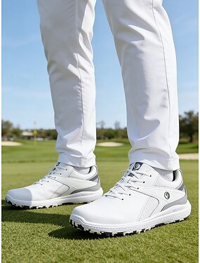 Мужские белые с желтыми вставками туфли для гольфа, с шипованной подошвой для лучшего сцепления, удобная посадка, идеально подходят для игры в гольф.