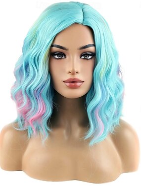 Парики из искусственных волос Волнистый Свободный локон Средняя часть Аккуратная челка Парик 12 дюймы Красный зеленый Искусственные волосы 12 дюймовый Жен. Мягкость Зеленый