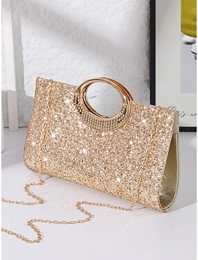 Женская блестящая серебряно-золотая вечерняя сумочка-клатч с металлической ручкой-кольцом, элегантная и стильная сумочка для вечеринок, свадеб и официальных мероприятий