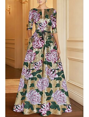Золотое вечернее платье с цветочной вышивкой А-силуэта элегантное формальное платье свадебное платье длина в пол полурассказной рукав V-образный вырез накидки с пайетками и карманом