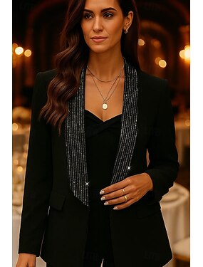 Жен. Блейзер Спортивная куртка Официальные Для вечеринок Свадебные прием Бархат Элегантный стиль Длинный рукав Воротник шалевого типа Однобортный крой