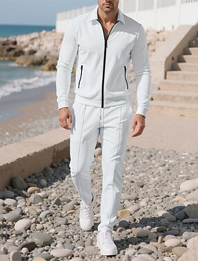 Муж. Легкая куртка Повседневная куртка Комплект Отпуск Повседневные Дышащий Карман 2 предм Весна Осень Полотняное плетение Мода Классика Лацкан Обычная Черный Белый Насыщенный синий Цвет хаки Серый