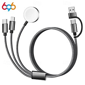 Необходимый дорожный кабель USB-C 3-в-2, подходящий для зарядки Apple Watch/iPhone 17/мультизарядный кабель Lightning, портативный, предназначенный для iWatch и iPhone 16