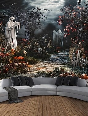 Гобелен на Хэллоуин, настенное панно с изображением скелета тыквы и призрака в виде замка, большая декоративная фреска для спальни, гостиной, вечеринки и домашнего декора