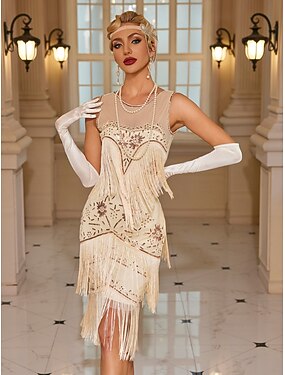 Бурные 20-е 1920-е годы До колена Платье для флаперов Без рукавов Великий Гэтсби Пайетки Бахрома Совок шеи Маскарадный костюм Жен. Рождество Карнавал Маскарад Ретро-вечеринка Танец Чарльстона Взрослые