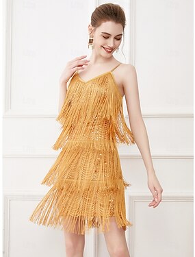 Бурные 20-е 1920-е годы Мини Платья Без рукавов Великий Гэтсби С кисточками Пайетки С кисточками V-образный вырез Маскарадный костюм Жен. Для клуба Ночь и особый случай Ретро-вечеринка Взрослые Платье