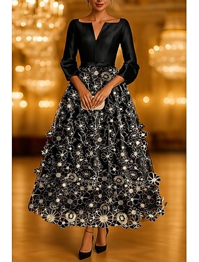 А-силуэт Ниже колена коктейльные платья Вечернее платье Платья для вечеринок Элегантный стиль Стиль знаменитостей С цветами Рукав 3/4 Квадратный вырез Официальные Свадьба Кружева с Аппликации