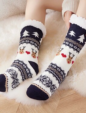 женские рождественские носки-тапочки, теплые носки с флисовой подкладкой, нескользящие носки для зимы, уютные носки для сна в отпуске или для дома