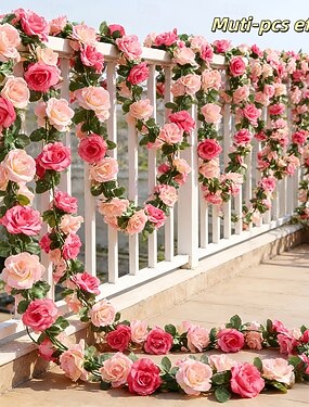 Две очень длинные гирлянды из искусственных двойных розовых весенних роз длиной 196,8 дюймов – арки и цветочные композиции для Дня святого Валентина, свадеб, дней рождения, украшения стен дома.