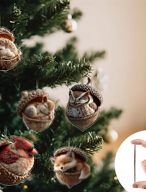 6/12 шт. лесных животных, желудей, 2D акриловые украшения, уютные лесные рождественские украшения, украшение в виде сосновой шишки, подвесное украшение в виде лесного существа, подвесное украшение для