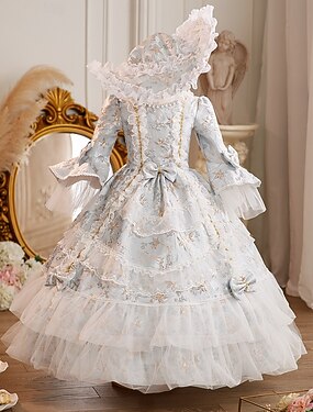 Ретро Рококо маскарадный Макси Коктейльные платья Аксессуары Летучая мышь Принцесса Бант Ретро С пышной юбкой Точка Маскарадный костюм Девочки Королевский Рождество Хэллоуин Карнавал