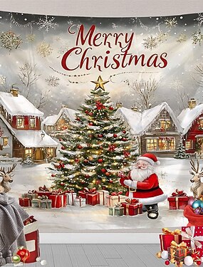 Гобеленовая фреска на рождественскую тематику – декоративное искусство, большой гобелен для дома, спальни, декор гостиной, фон для фотографий, тканевые шторы