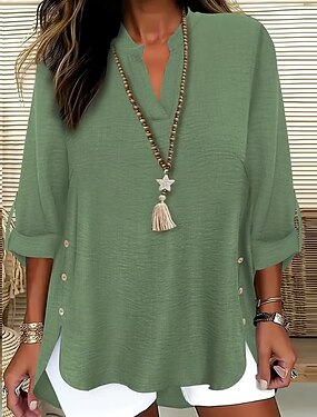 Жен. Летняя рубашка Повседневная рубашка Кнопка рубашка Блуза Пуговицы Сплошной цвет Отпуск Стиль На каждый день Рукав 3/4 V-образный вырез Обычные топы Повседневные на открытом воздухе Праздники