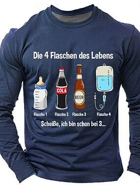 Смешная мужская футболка с длинным рукавом "4 бутылки жизни" Юмор о пиве и старении "Уже на 3" Графическая футболка