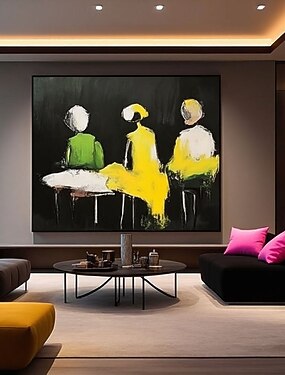 Расписанная вручную большая современная фигуративная живопись, красочный силуэт, оригинальная акриловая картина на холсте для домашнего декора, современное настенное искусство на холсте