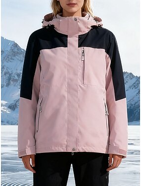 Жен. Повседневная куртка Водонепроницаемые куртки-дождевики Водонепроницаемая пуховая куртка 3-в-1 Водонепроницаемость Удобный Молния Карман На каждый день Контрастных цветов