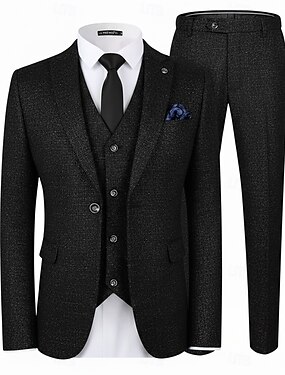 Мужской Бизнес Деловые костюмы Лацкан с тупым углом Черный Темно синий Формальная Однотонный Стандартная посадка Набор из 3 предметов Однобортный с 2 пуговицами