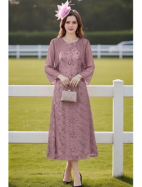 А-силуэт До щиколотки Платье для вечеринки Коктейльные платья Платье для матери невесты Рукав 3/4 Вырез под горло Элегантный стиль Простой с Кружева
