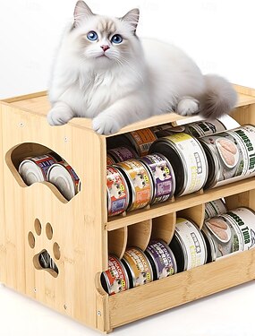 Ящик для хранения контейнеров для корма для кошек, подходит для складских помещений, двухъярусный складной деревянный контейнер, подходит для холодильников, шкафов и кухонь, вмещает до 36 контейнеров