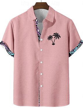 Муж. Кокосовая пальма Тропические растения Гавайская рубашка Кнопка рубашка Рубашка Алоха С короткими рукавами Гавайский Отпуск Праздники Одежда для пляжа Лето Весна Отложной 3D печать Рубашка из льна
