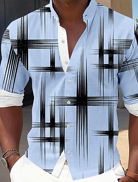 Муж. Геометрический принт Градиент Линии Рубашка Кнопка рубашка Рубашка с воротником-стойкой Длинный рукав На каждый день Повседневные на открытом воздухе Отпуск Весна Осень