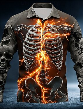 Муж. Черепа Молния Скелет Рубашка Кнопка рубашка Длинный рукав Темный готический стиль на открытом воздухе Праздники Лето Весна Отложной 3D печать рубашки с воротником Темно-серый Серый