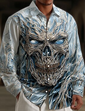 Муж. Скелет Холодное сердце Ледяной череп Рубашка Кнопка рубашка Длинный рукав Темный готический стиль Праздники Уличная одежда Весна Осень Отложной 3D печать рубашки с воротником Синий