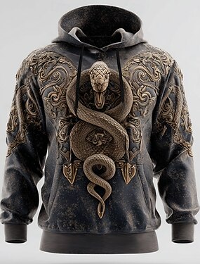 Муж. 3D Змея Толстовка Круто Для вечеринки Длинный рукав Вырез под горло Для клуба Уличная одежда Синий Зеленый Цвет хаки Серый Кулиска Осень Зима Дизайнер S M L XL XXL XXXL