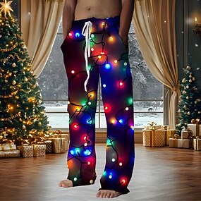 Новогодняя тематика Муж. Флисовые спортивные штаны Эластичная талия на шнурке Вечерние наряды Карман Термальные Зима 3D печать Multi Color