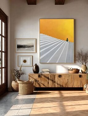 3D-картина маслом ручной работы, изысканная абстрактная сцена с лестницей, выполненная вручную, с насыщенными оттенками и подробными мазками кисти, картина маслом