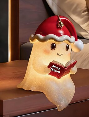 Лампа для чтения с привидением, рождественская шапка, маленькая лампа-призрак с книгой, 3D-ночник с привидением, милая рождественская гирлянда, ночник-статуя привидения, каминная полка для спальни,