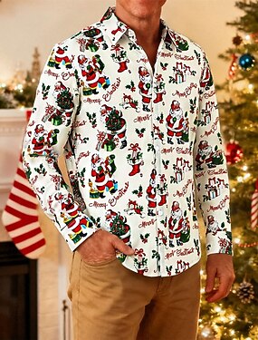 Рождество Длинные рукава Рубашка на пуговицах Дед Мороз Графический Оригинальные Забавный для Муж. Взрослые 3D печать для Рождество Карнавал Новый год Для вечеринок