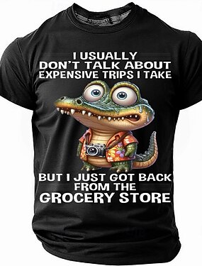 Мужская смешная футболка "Дорогие поездки" с графикой аллигатора в продуктовом магазине короткий рукав юмор