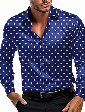 Муж. Геометрический принт Горошек Рубашка Атласная рубашка Длинный рукав Деловая одежда Отпуск На каждый день Лето Весна Осень Отложной 3D печать Рубашки на пуговицах