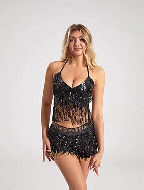 Сет для belly dance из черных пайеток с ресничками от Samba Dancewear