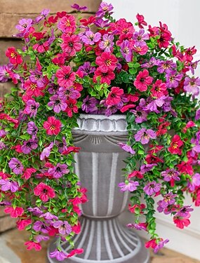 2/4 шт. искусственных подвесных цветов для украшения улицы, весеннее украшение фиолетового и фуксиевого цвета, реалистичные растения, устойчивые к ультрафиолетовому излучению и выцветанию, шелковые