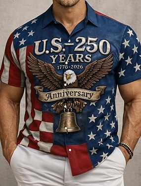 Муж. 4 июля — 250-летие США Флаг США Патриот Рубашка Кнопка рубашка С короткими рукавами Мода Повседневная Отпуск Праздники Лето Весна Отложной 3D печать рубашки с воротником