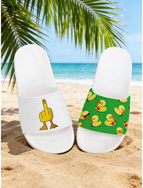 мужские сандалии-слайдеры с принтом «утки» — непринужденный и стильный стиль для мужчин, которые любят летние поездки на пляж, барбекю и неформальные встречи на свежем воздухе