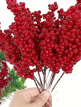 12/24 шт. искусственных красных ягодных веточек – 8,66 дюйма (22 см) для рождественских елок, которые можно использовать в качестве поделок своими руками, на свадьбах, для домашнего декора и