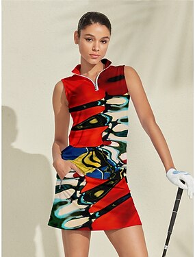 Жен. Футболка-поло Красный + синий Без рукавов Верхняя часть Женская одежда для гольфа Одежда Одежда Одежда