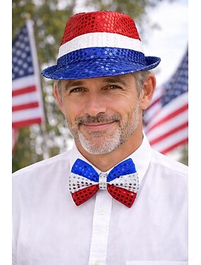 250-летие США Панама шляпа Бабочка Цилиндр Дядя Сэм Оригинальная обувь Патриот Пайетки Взрослые Универсальные День независимости 4 июля Для вечеринок Парад Одеваемся